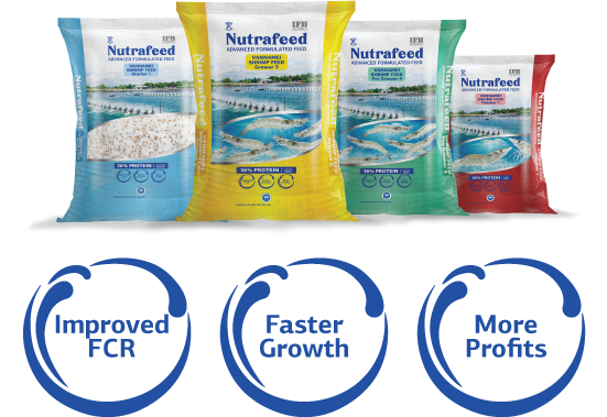 Nutrafeed's selective ingredients and strict quality control ensures faster growth with improved FCR* and lower crop risk. It is environment friendly because it significantly reduces culture maintenance
