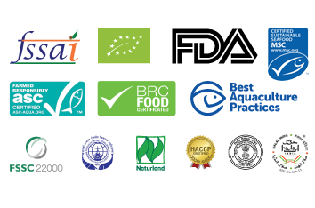 Bite into soft and succulent Ready to Cook Prawns in a range from Small to Super Jumbo individually Quick Frozen at – 18˚C to lock in nutrition and taste or filleted portions of Basa filled with healthy Omega-3 Fatty Acids.